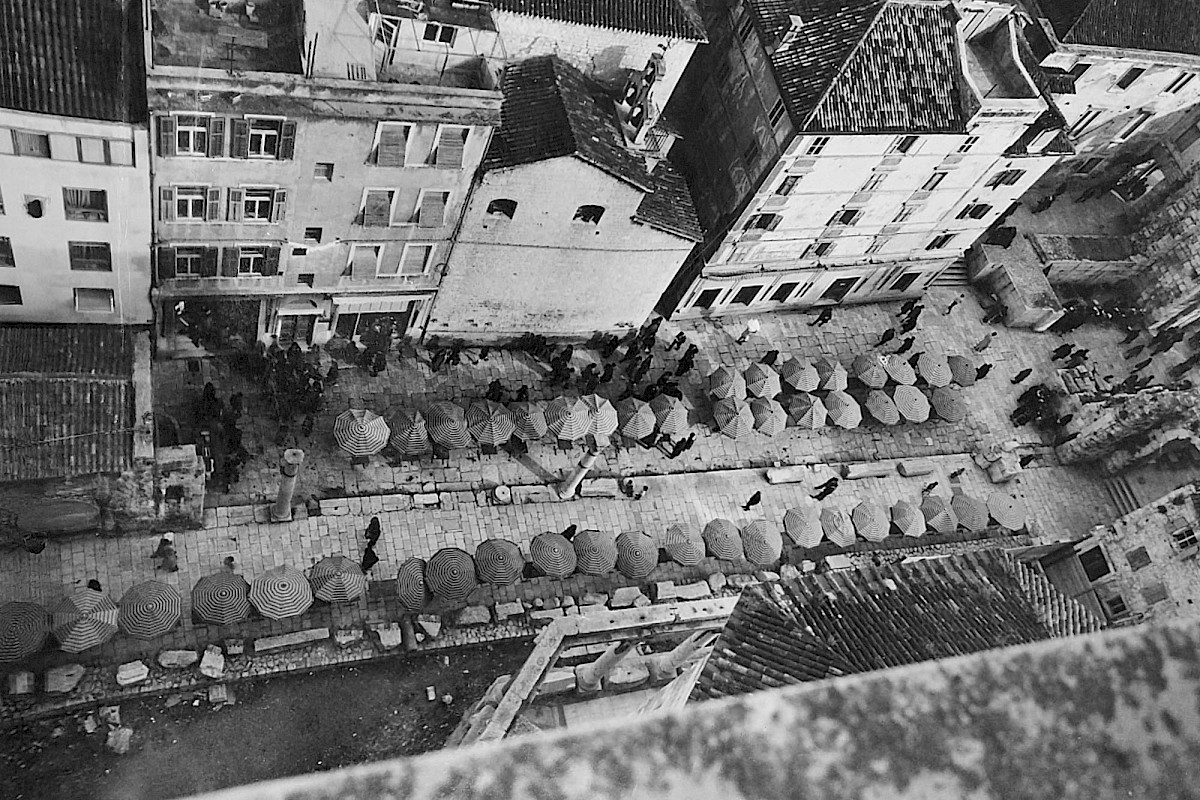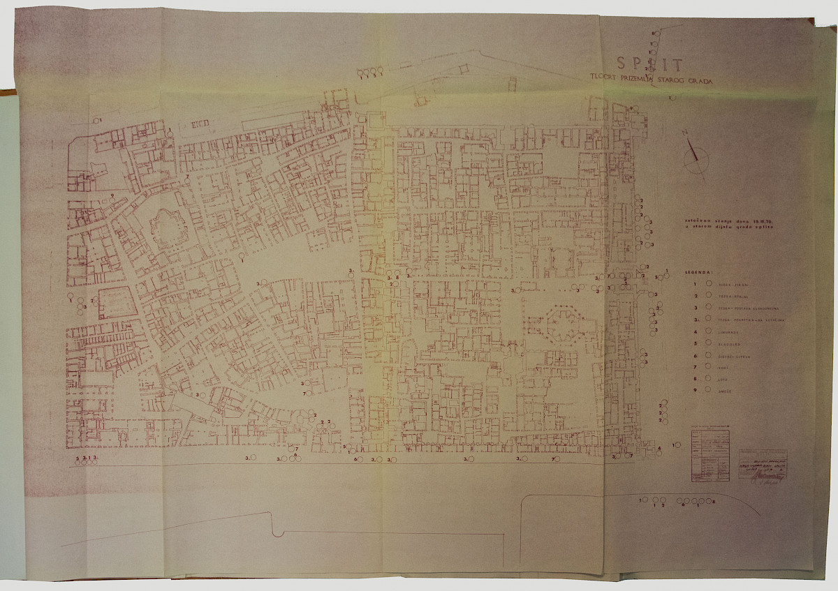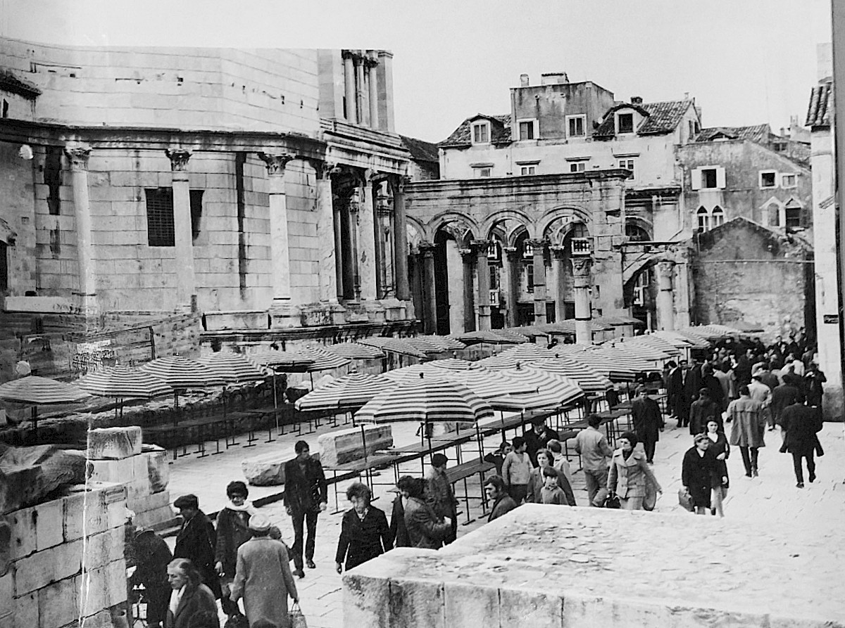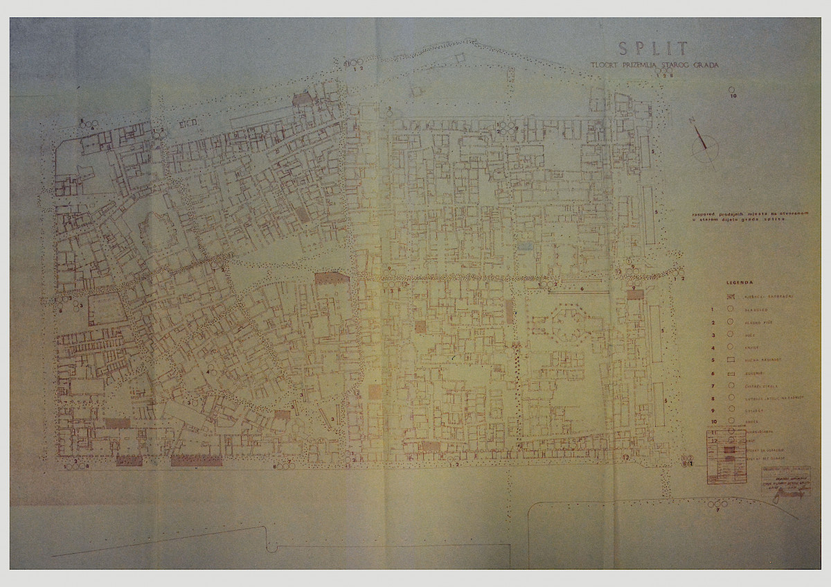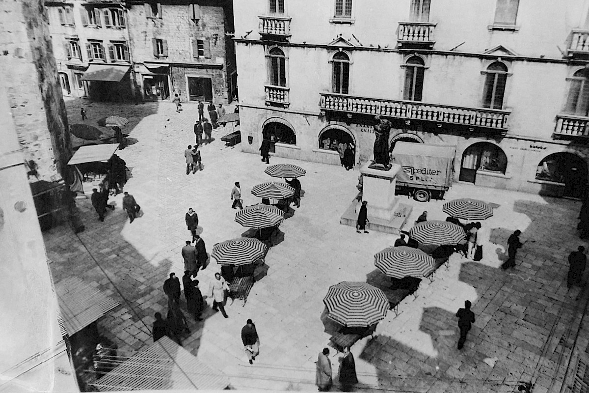 Poduzeće za izgradnju Splita od Urbanističkog zavoda Dalmacije - Split 1971. naručuje izradu Studije rasporeda prodajnih mjesta na otvorenom u starom dijelu grada Splita. Studiju izrađuje Odjel za graditeljsko nasljeđe s odgovornim projektantima Jerkom Marasovićem i Bartulom Barišićem uz suradnju sa Zavodom za zaštitu spomenika kulture koji izrađuje analizu pješačkog kretanja. Studija se sastoji od tekstualnog obrazloženja postojećeg stanja, fotografija sa scenarijima rasporeda i karti koje markiraju raspored prodajnih mjesta.