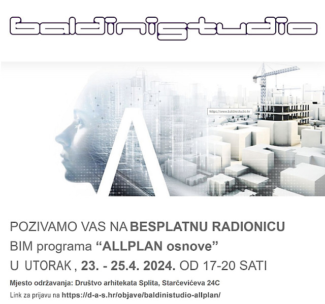 Društvo arhitekata Splita i Baldinistudio vas pozivaju na besplatnu radionici sa uvodnim zanimljivim stručnim predavanjima