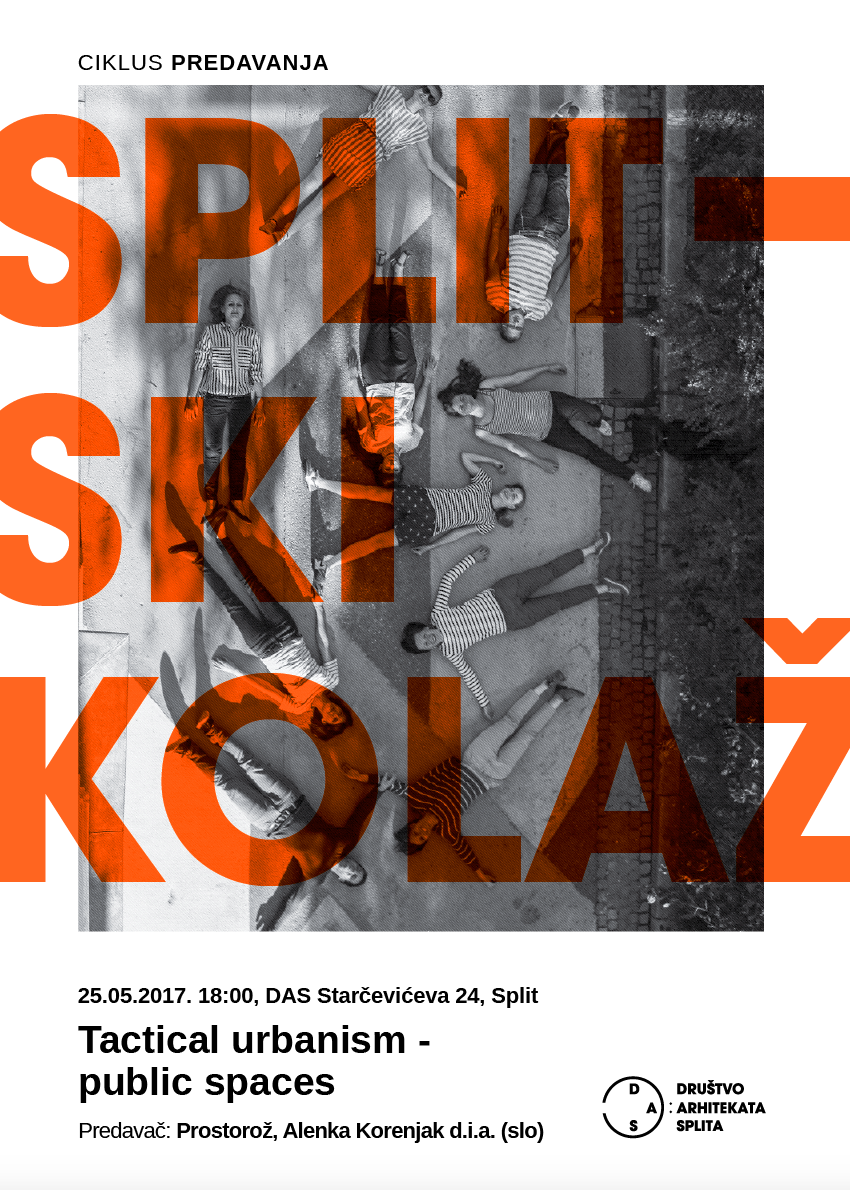 Četvrto predavanje ciklusa „Splitski kolaž” održat će slovenska arhitektica Alenka Korenjak, suosnivačica udruge prostoRož, a naziv predavanja je „Tactical urbanism - public space”.