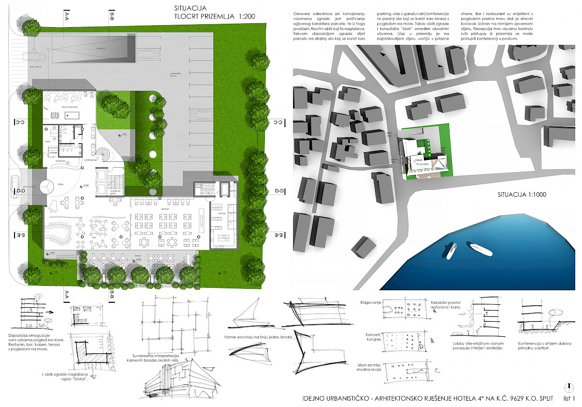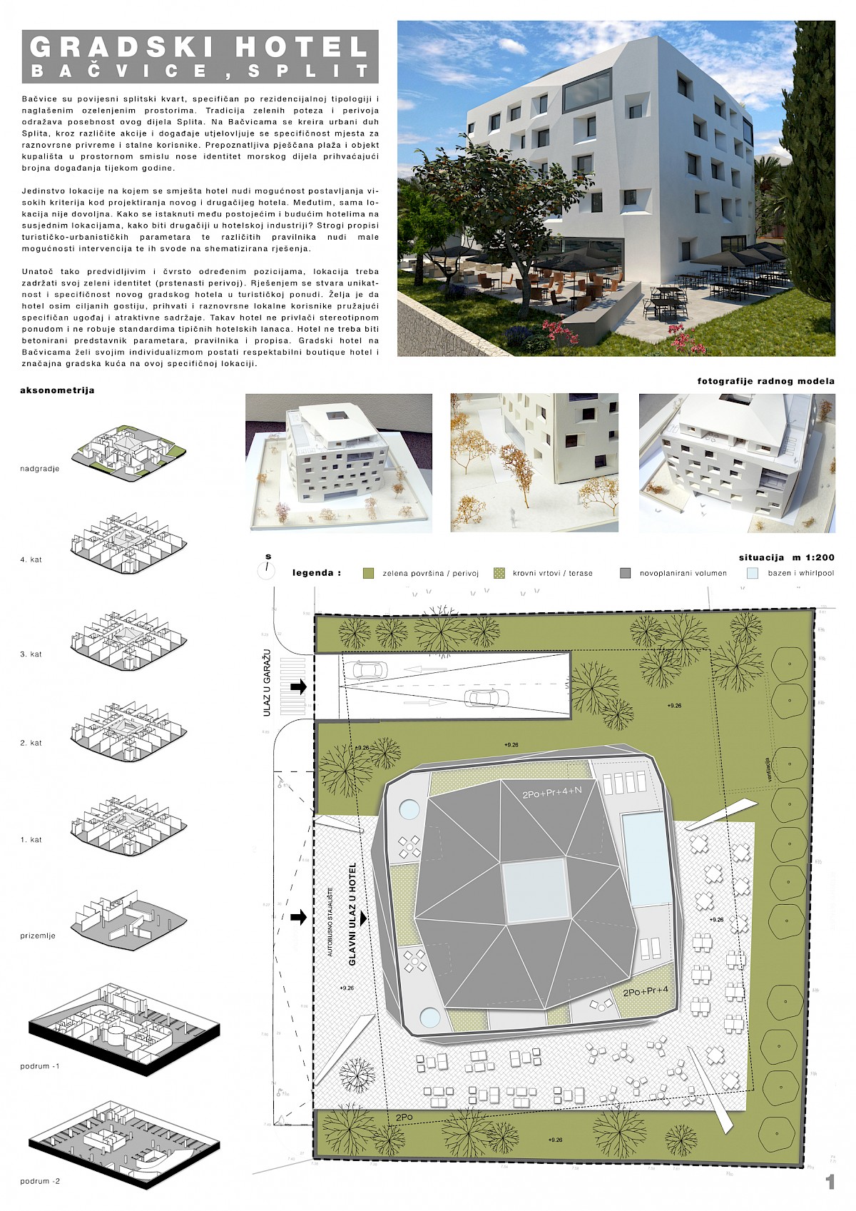 Dobivanje najboljeg idejnog urbanističko - arhitektonskog rješenja za izgradnju hotela 4* na čest. zem 9629 K.O. Split unutar gradskog predjela Bačvice u Splitu, koje će poslužiti kao podloga za dobivanje akata za izgradnju istog.