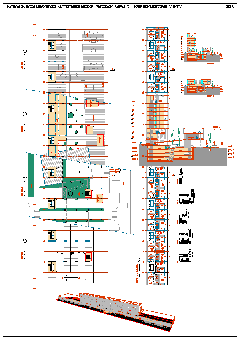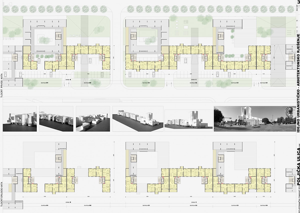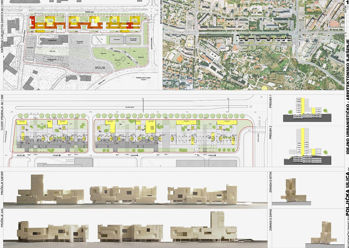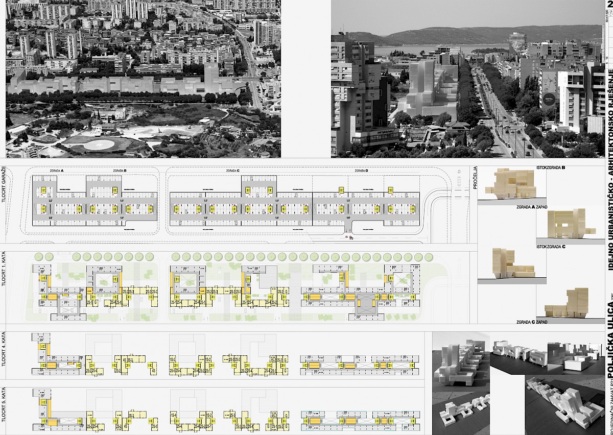 Jaki potez, izduženi volumen, elegancija pročelja u potpunosti odgovaraju na kontekst Poljičke ulice, na njezin snažan potez i blizinu Splita 3. Rad svojom beskompromisnošću problematizira pitanje suvremenog kolektivnog stanovanja, prostore okupljanja (urbani plato), zabave i sporta, te urbanog zelenila. Uzbudljivost presjeka kao da evocira neka već zaboravljena sjećanja Splita iz 50-ih i 60-ih godina, sa snažnim urbanim potezima i građevinskim gestama. Radu se može zamjeriti svojevrsna rigidnost i formalnost pristupa oblikovanja mikro mjesta, javnih prostora i stanova, koji su prvenstveno plod želje za jakim i nedvosmislenim konceptom građevine kao urbanotvornog elementa i geste. Kuća kao generator razvoja grada, grad oblikovan kućom mogao bi biti svojevrsni moto ovog rada. Rad nažalost ne rješava na zadovoljavajući način anketni dio natječaja sa precizno zadanim programom i namjenom. Time rad dovodi u pitanje postavke GUP-a sa društvenom namjenom na južnom dijelu obuhvata.