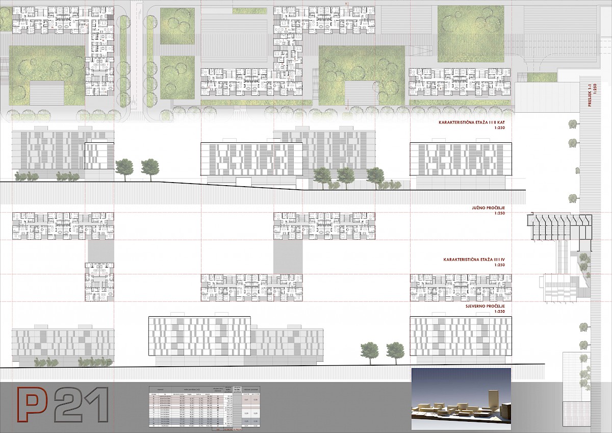 Krajnje jednostavna tlocrtna rješenja stanova arhetipske orijentacije sjever-jug predstavljaju dodatnu kvalitetu ovog rada.