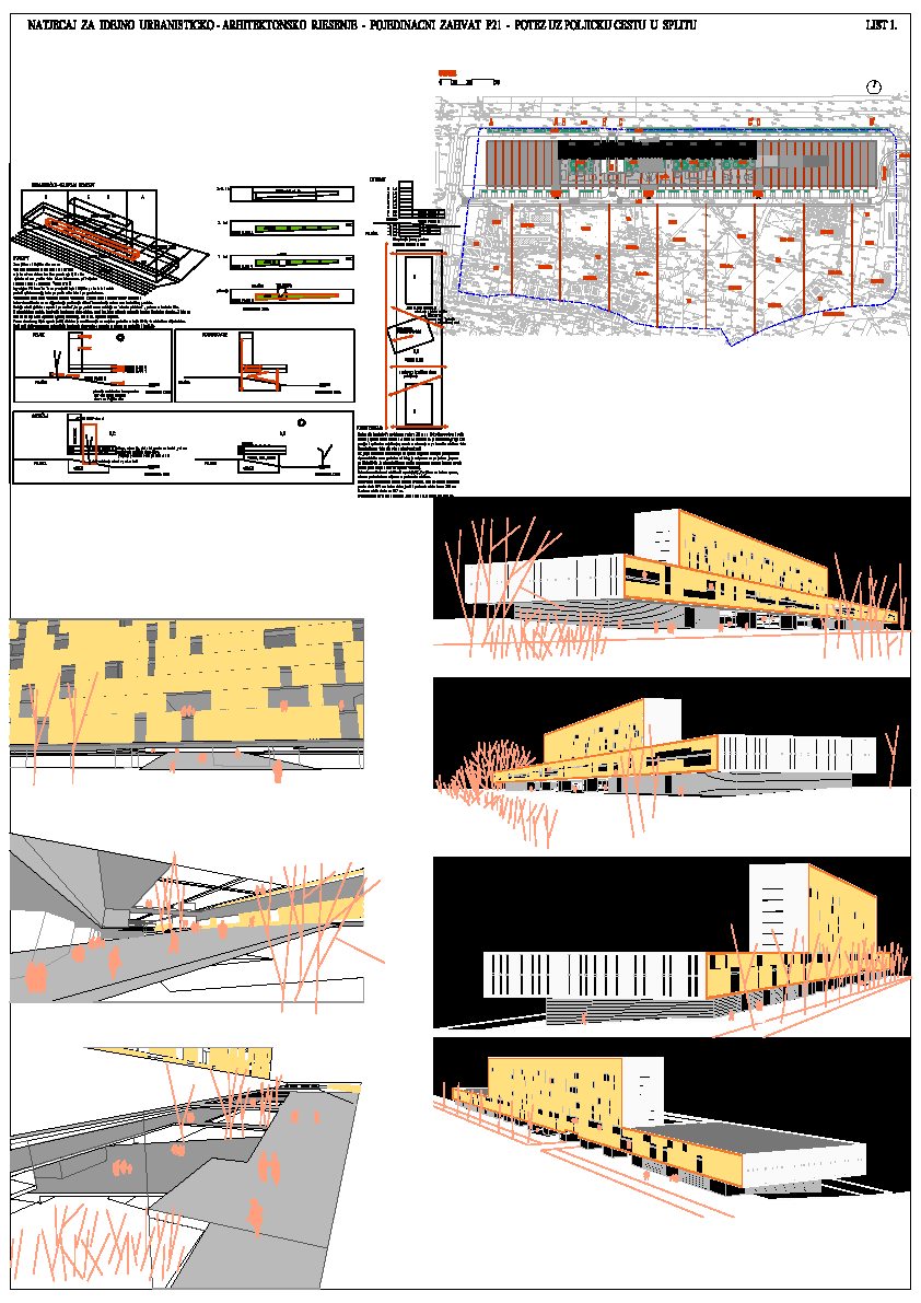 Daljnjom razradom projekta autor mora ostati dosljedan jednostavnosti, oporosti, te simplifikaciji oblika i volumena da bi se sačuvao doživljaj megastrukture razvučene između dva značajna raskrižja.