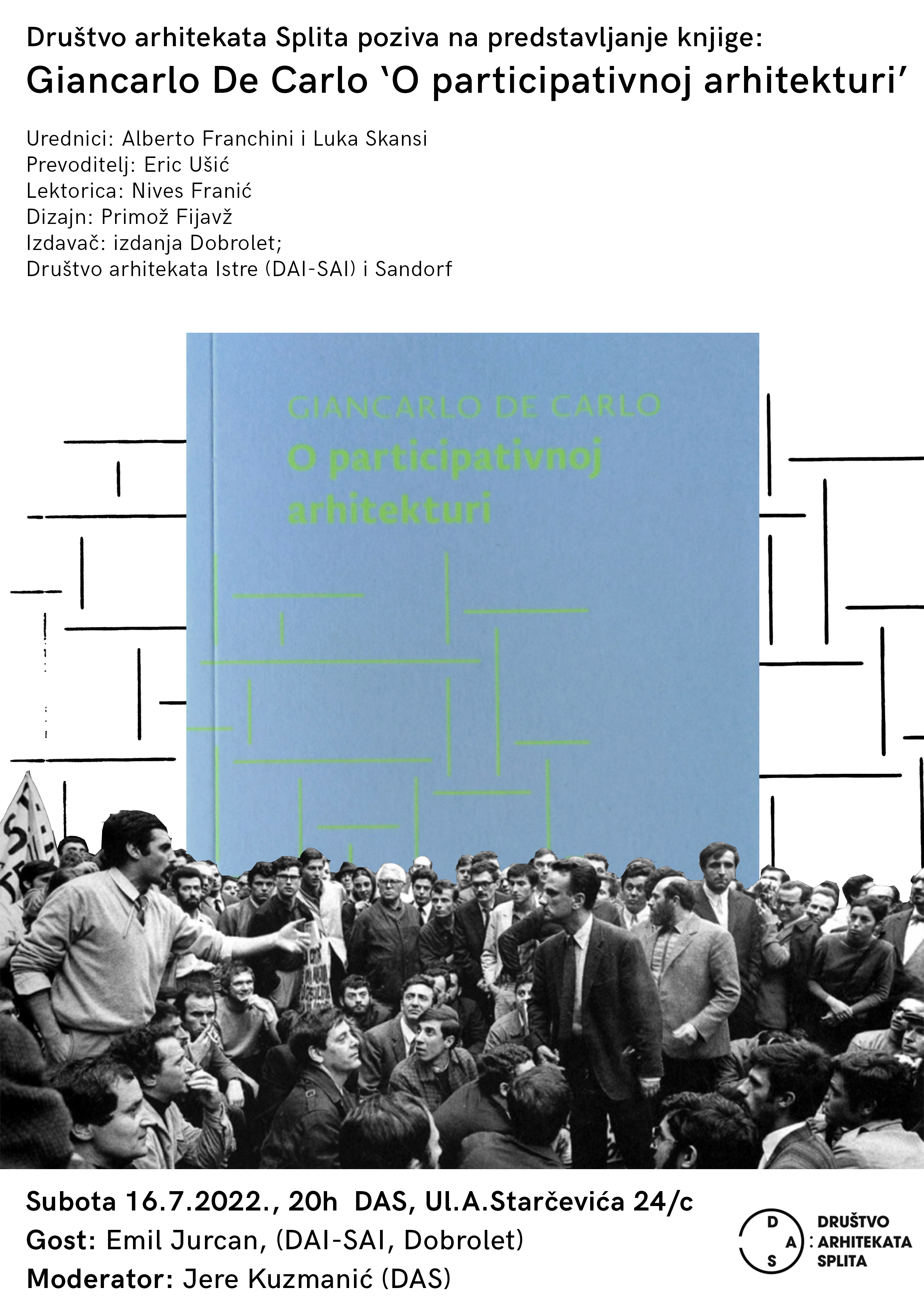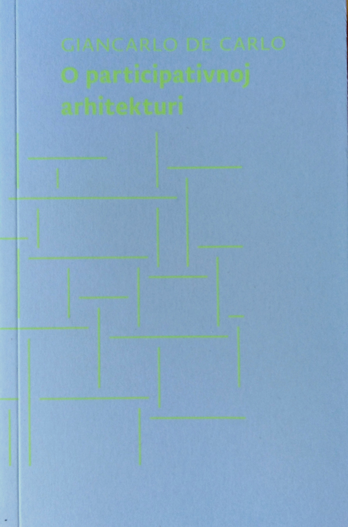 Dobroletovo izdanje donosi osam De Carlovih tekstova na temu participacije u arhitekturi po izboru urednika Alberta Franchinija i Luke Skansija.