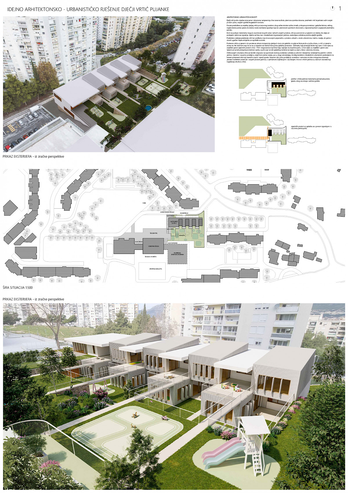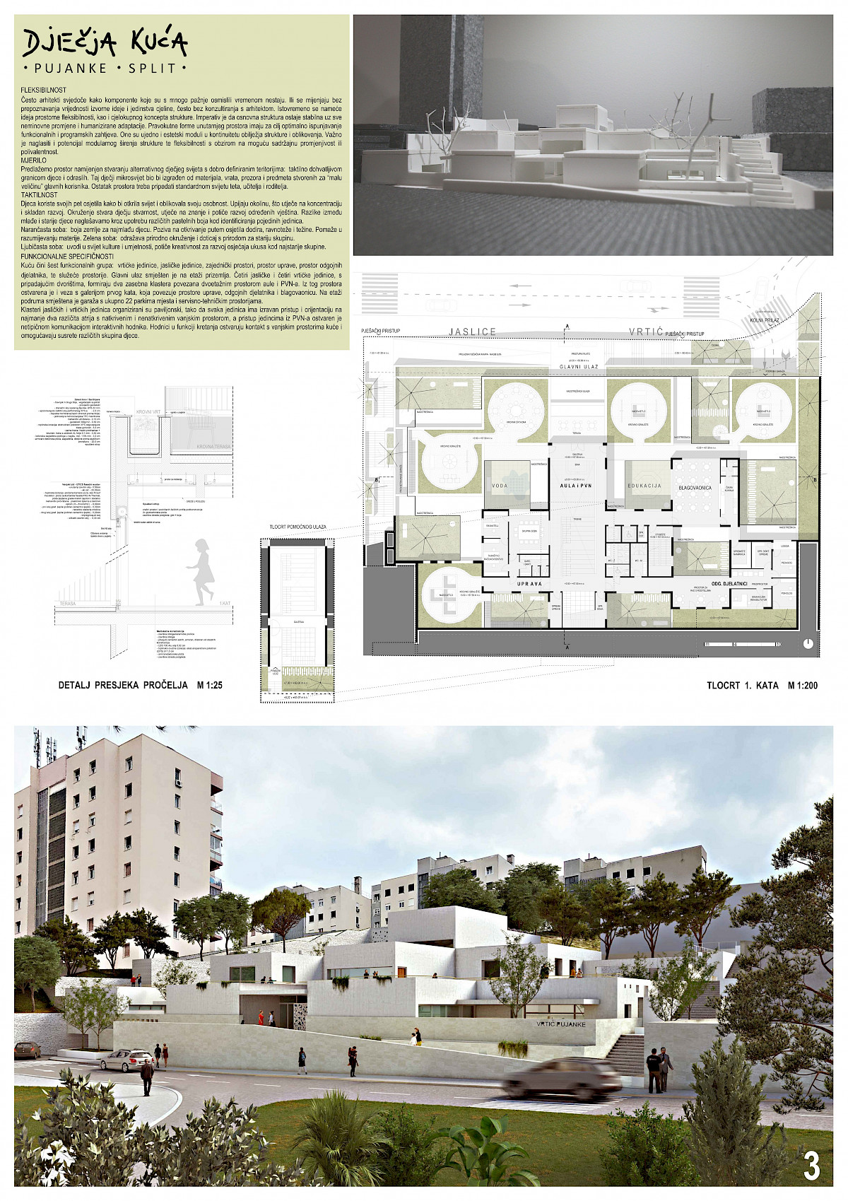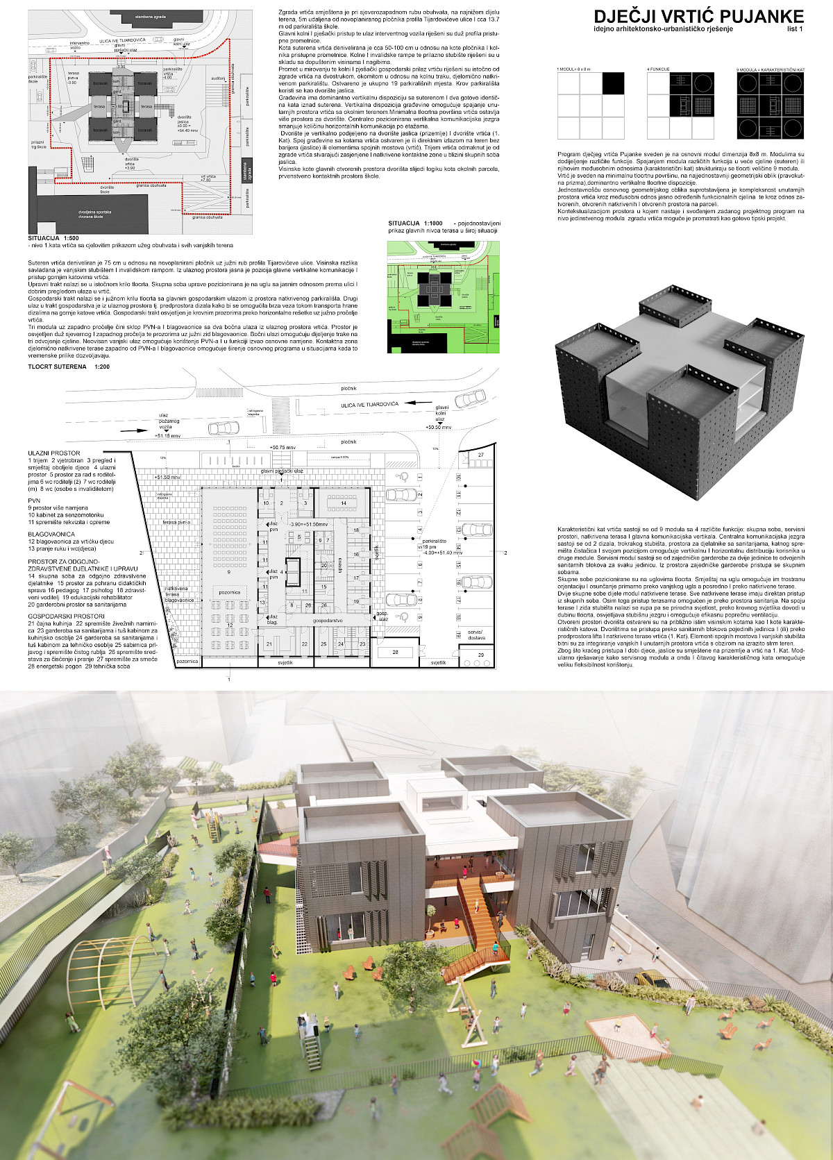 Specifični cilj natječaja je bio odabir kvalitetnog oblikovnog, funkcionalnog i ekonomičnog arhitektonskog rješenja, koje će biti podloga za izradu glavnog projekta za ishođenje građevinske dozvole dječjeg vrtića Pujanke.