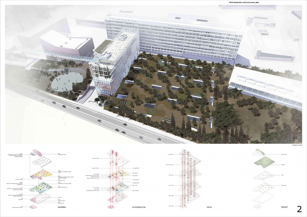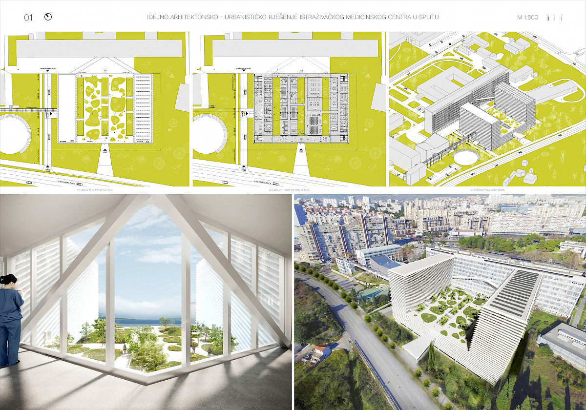 - Specifični cilj natječaja je odabir kvalitetnog oblikovnog, funkcionalnog i ekonomičnog arhitektonskog rješenja, koje će biti podloga za izradu glavnog projekta za ishođenje građevinske dozvole Istraživačkog medicinskog centra Split.