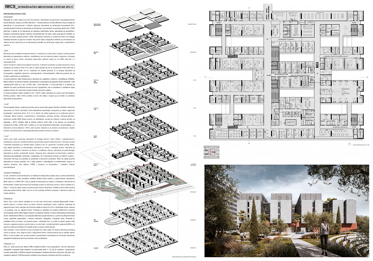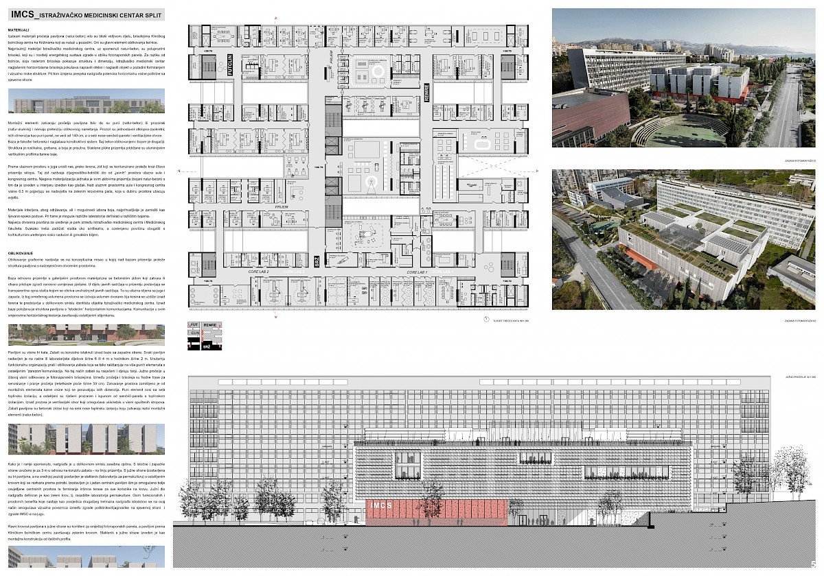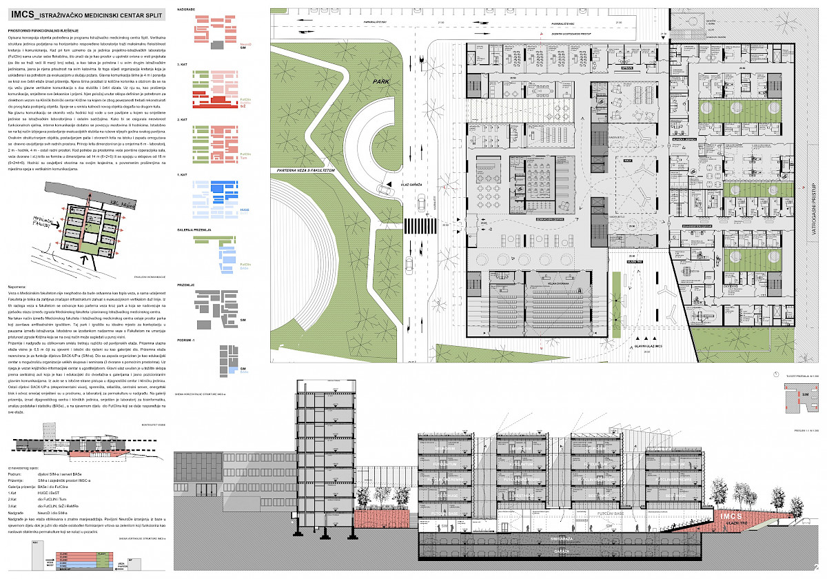 Radi ispitivanja optimalnih mogućnosti iskorištenja predmetne lokacije, a u skladu s odredbama, Prvonagrađeno rješenje, u dijelu ZA REALIZACIJU, poslužiti će kao podloga za izradu projektne dokumentacije za građenje građevine (u smislu čl. 3./19., Zakona o gradnji, NN 153/13, 20/17, 39/19, 125/19) Istraživački medicinski centar Split (IMCS).