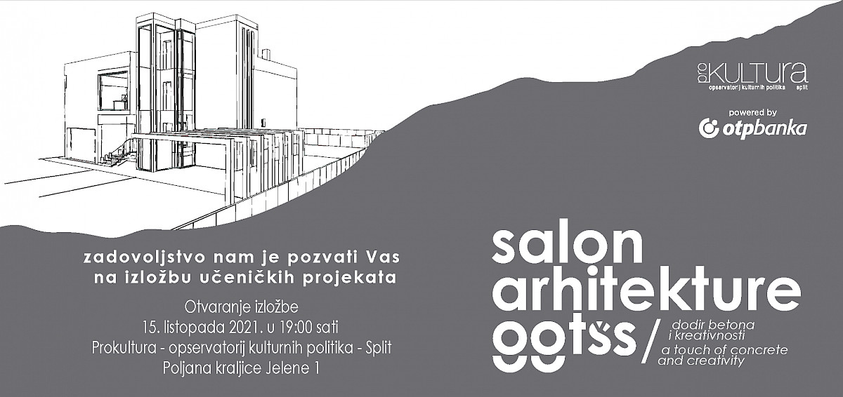 Graditeljsko - geodetska tehnička škola vas sa zadovoljstvom poziva da u periodu od 15.10.2021 do 23.10.2021. radnim danom u vremenu od 10:00-12:00 i 18:00-20:00 posjetite izložbu projekata učenika usmjerenja arhitektonski tehničar u prostoru Prokulture - Opservatorij kulturnih politika na adresi Poljana kraljice Jelene 1.