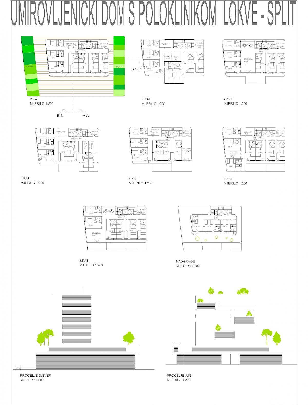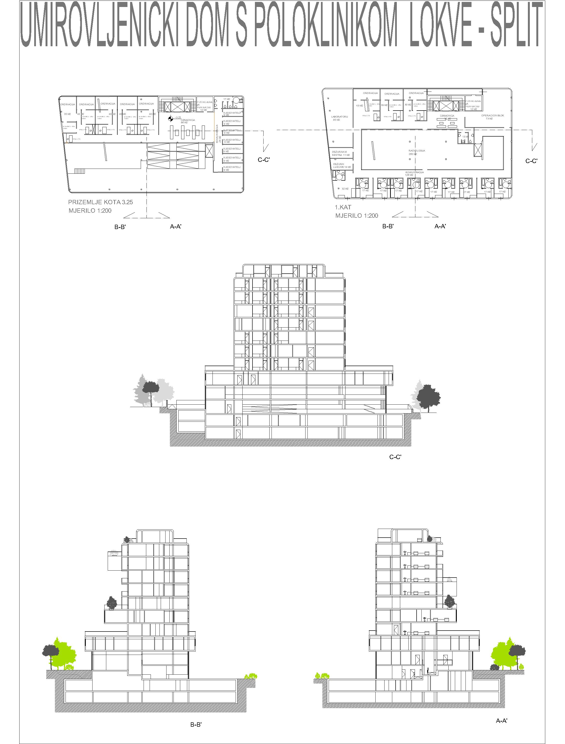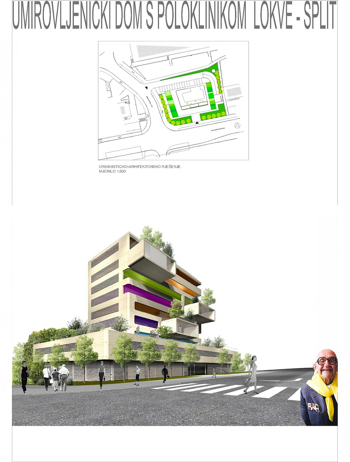 Odluka ovog rada je funkcionalno i volumenski razdvajanje prostora doma od sklopa poliklinike. Time je značajno olakšana artikulacija pojedinih dijelova u konstruktivnom, funkcionalnom i oblikovnom smislu. Organizacija etaža stacionara i pojedinačnih soba je kvalitetna. Posebno se cijeni raznovrsnost soba koja doprinosi humaniziranosti zgrade i ugodnijem boravku. Balkonima se dodatno izražava individualnost svake sobe i doprinosi kvaliteti oblikovanja.