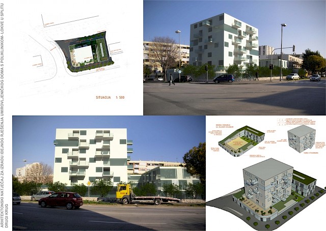 Rad je vrlo detaljno interpretirao programske odrednice sa naglaskom na poliklinički dio sklopa. Međutim, zgušnjavanjem pojedinih sadržaja nije ostvarena potrebna jasnoća, posebice u horizontalnim komunikacijama i zajedničkim prostorima. Ostvarena je kvalitetna dispozicija i orijentacija pješačkih pristupa i ulaza. S druge strane nejasan je i nelogičan tretman vanjskog parkiranja i vrlo strogo pozicioniranje isključivo jedne jezgre vertikalne komunikacije. Oblikovanjem se nastojalo reinterpretirati tema stambenih blokova u okruženju, što je ocjenjivački sud ocijenio kao nedovoljno ambiciozan pristup.
