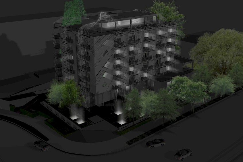 Naglasak i izdvojenost smještajnog dijela sklopa daje prioritet budućim korisnicima istovremeno stvarajući novu oblikovnu vrijednost uglovnice u zatečenom gradskom okruženju.