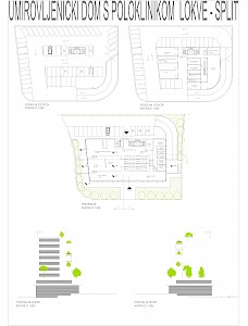 Artikulacijom prohodnog prizemlja zajedničkim sadržajima rad kvalitetno rješava odnos prema okolnim ulicama i urbanistički postav zgrade. Ovom odlukom značajno je određena socijalna interakcija unutar doma. Nedostatak je izrazito velika površina «potrošena» na rampe i nerazdvajanje korisnika doma i korisnika poliklinike. Potencijalno vrlo kvalitetna terasa na 3. katu ograničena je u korištenju jer na nju ne izlaze zajednički sadržaji.